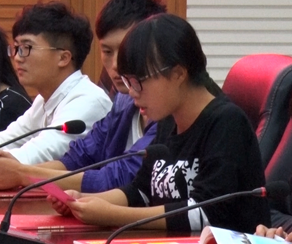 仪式上,受助学生代表、我院中文系2015级汉语言文学专业熊传桂同学作了发言。她动情讲述了自己艰辛的求学成长经历,表达了今后的奋斗决心和目标,并向学院和市残联表达了深深的谢意。