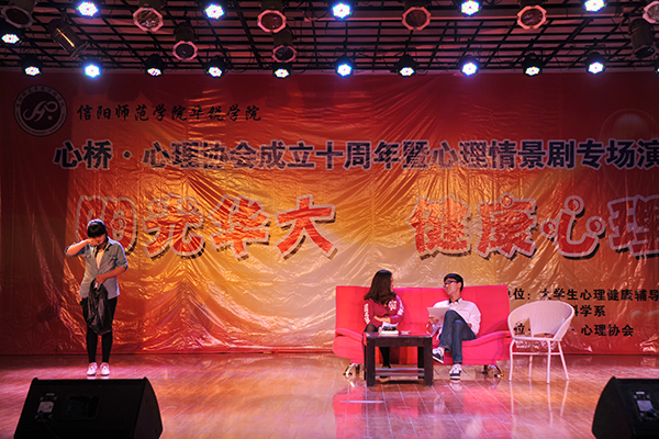 5月11日晚,由社会科学系、院团委、大学生心理健康辅导中心联合主办的心桥•心理协会成立十周年暨心理情景剧专场演出,在大学生活动中心隆重举行。院长施昌海、院党委书记张莉、副院长王志华、社会科学系主任陈录生、艺术系副主任李世胜、有关部门负责人于祥杰、张忠锁、张天定、张俊忠、陈杰、张甲楠、胡秀云等及700余名师生观看了演出。