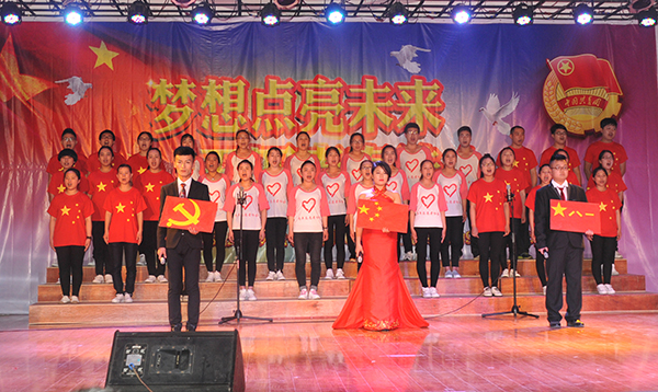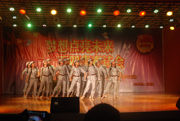 5月4日晚,由院团委主办的纪念抗日战争胜利70周年暨五四运动96周年青春诗会在大学生活动中心举办。共青团信阳市委书记赵君峰,我院党委书记张莉、艺术系副主任潘传柏、院长办公室副主任张富庄、党委办公室副主任张俊忠、宣传部副部长陈杰、团委副书记胡秀云及各系党总支副书记、团总支书记、辅导员和600余名学生代表共同观看了本场诗会。